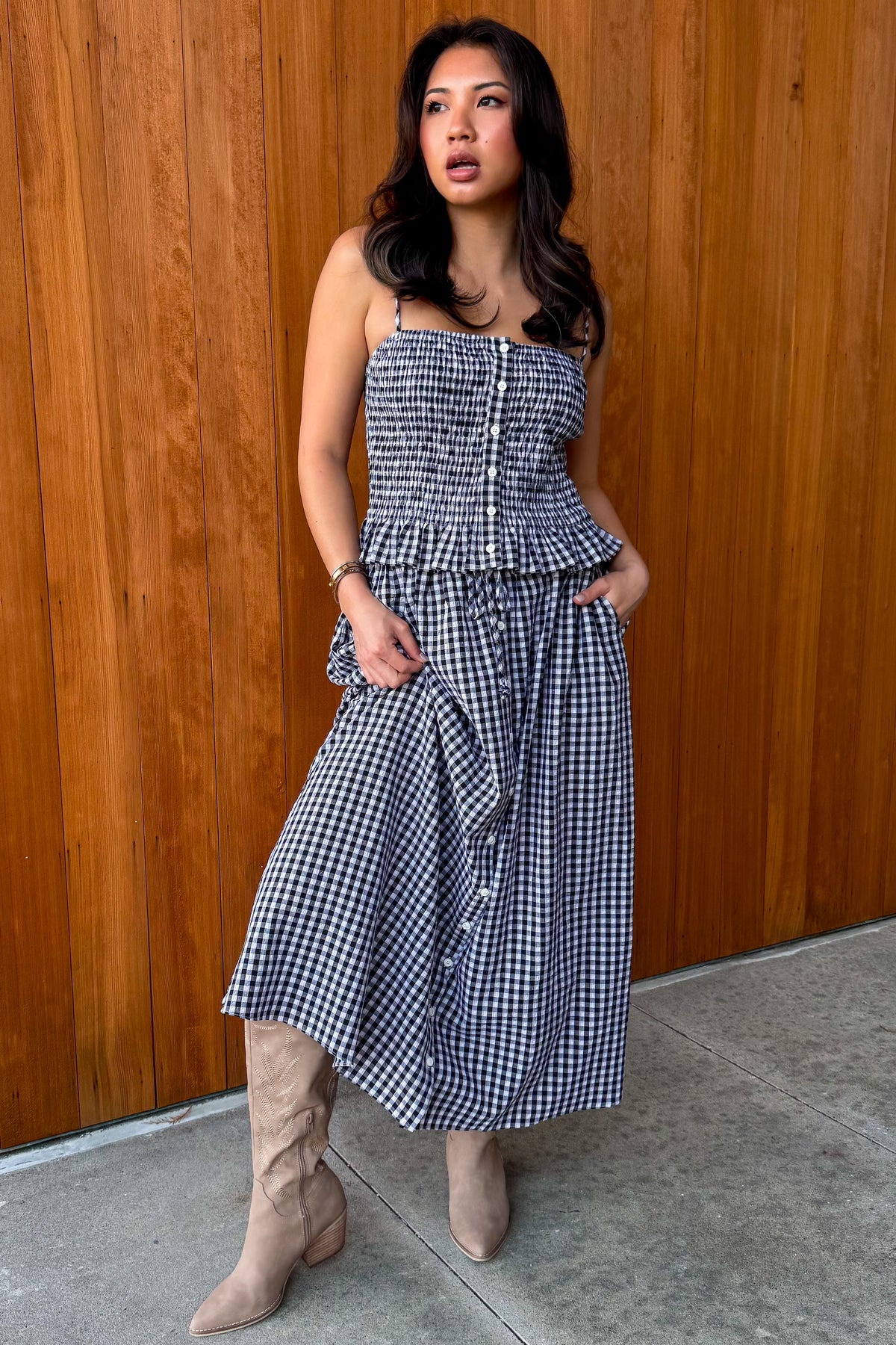 Sunny Days Gingham Top-Black