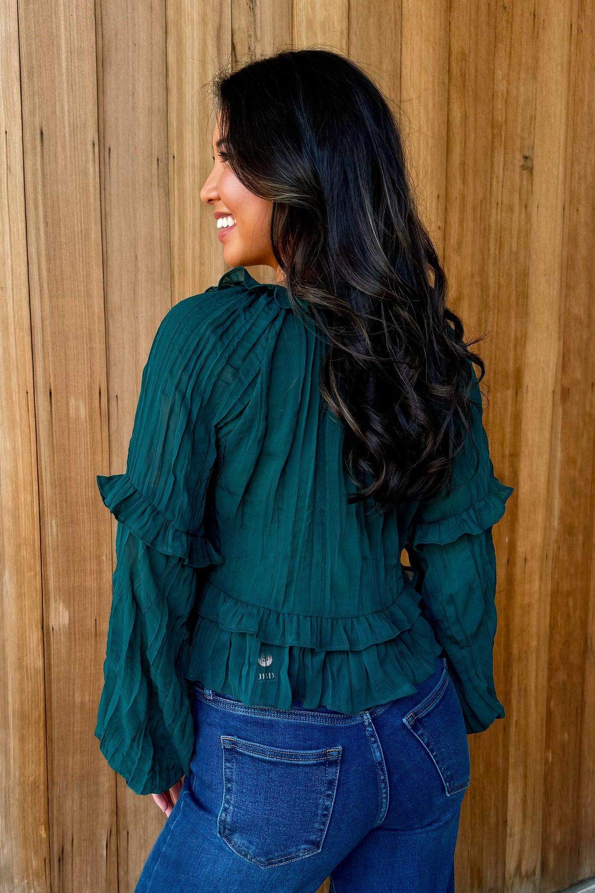 • Long sleeve, ruffle detail, Sheer,