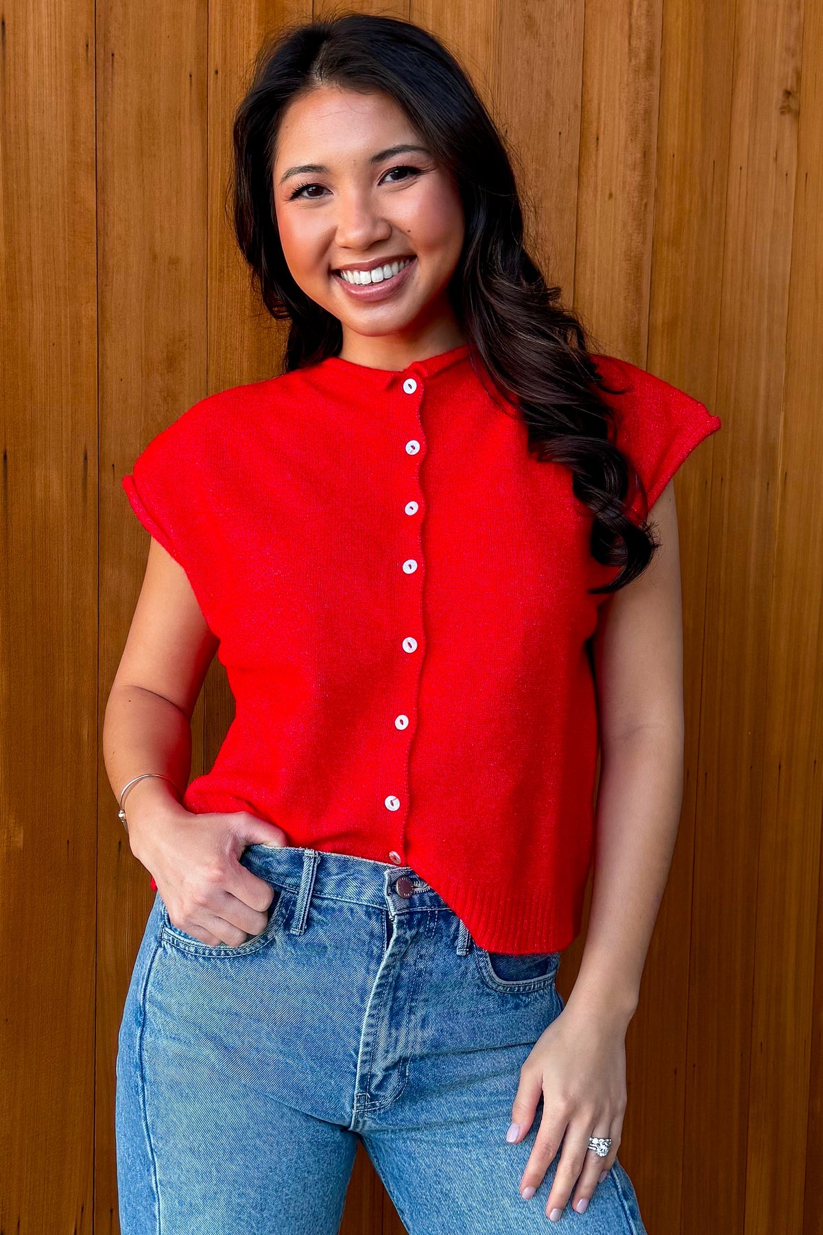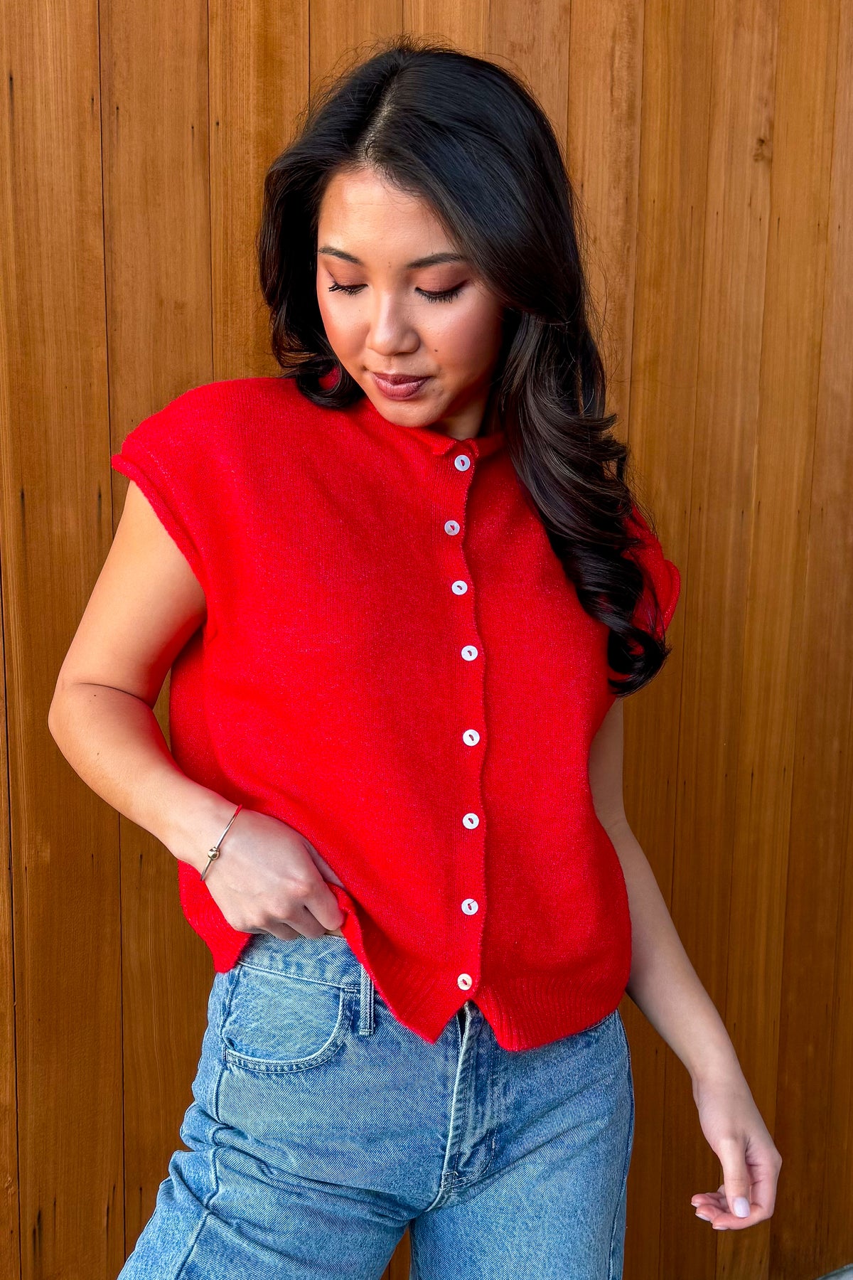 Piper Vest Cardigan-Red